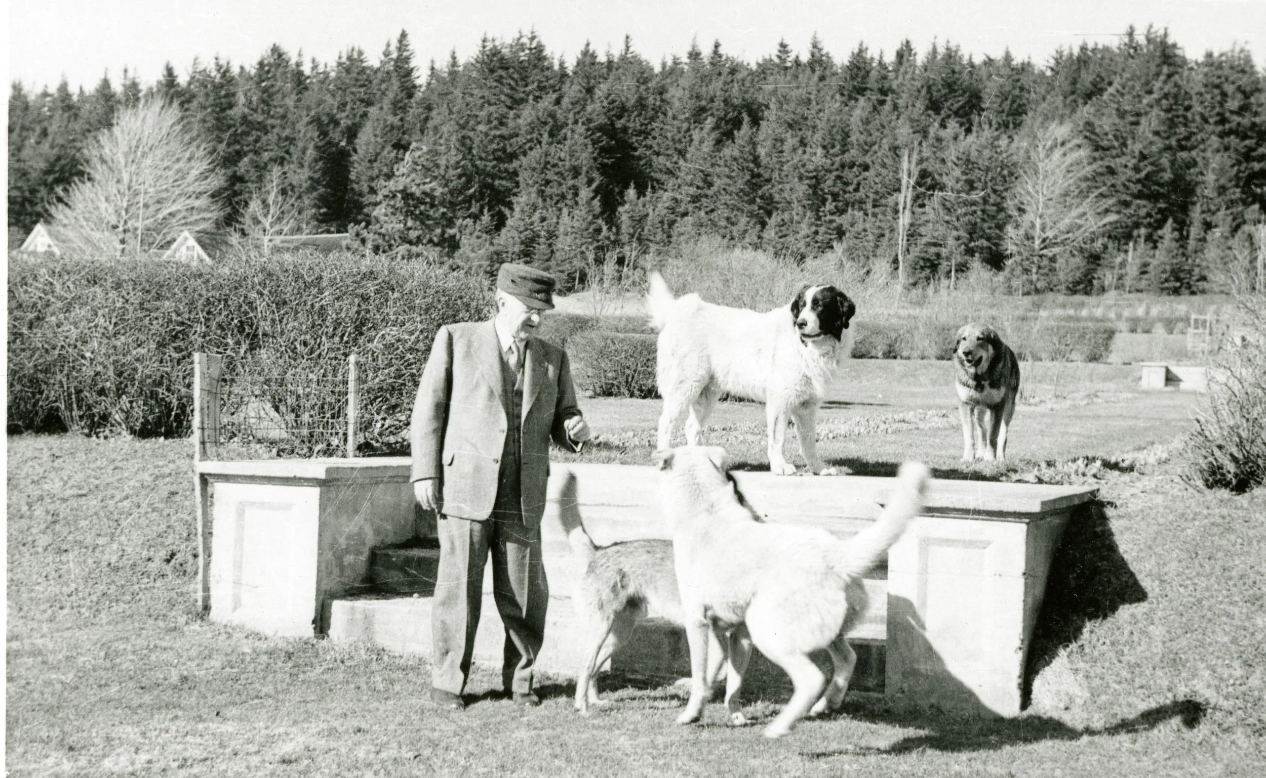 After retiring from the Army in 1932, Arthur Budd lived on the property at Notchview until his death in 1965. A career Army man, Budd was well known for his love of dogs (who appeared in many pictures with him), as well as hiking his property barefoot and in a straw hat and short pants, no matter the weather. —Rachel Niswander, Terra Corps Community Engagement Coordinator